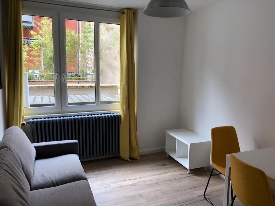 Au 1er étage d'un bel immeuble se trouve un appartement meublé 2 pièces de 35 m2 refait à neuf .Sur cour intérieure au calme.