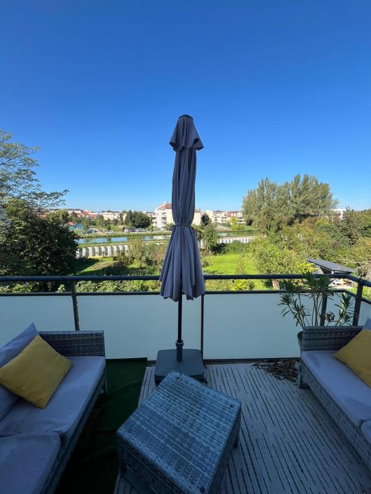Place de parking sécurisée et terrasse de 12m2 sans vis-à-vis avec une belle vue dégagée donnant sur le canal.